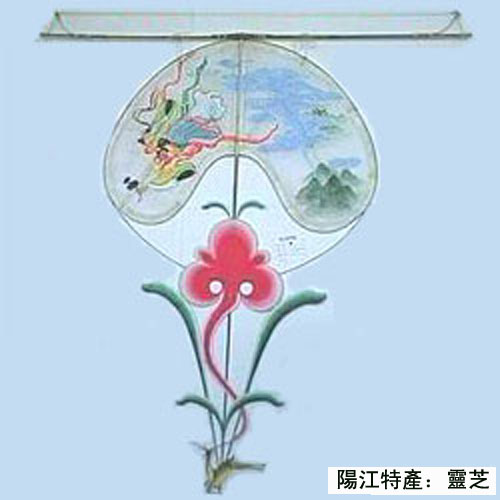 陽江扎制的風箏,種類繁多,有龍類、板子類、軟翅類、硬翅類、筒子類、串類、復線操作類等,不但放飛效果良好,而且形神兼備,具有極高的實用價值、欣賞價值和收藏價值。 “靈芝”風箏被評為世界十絕,“百足”風箏長可達100多米。陽江現已在鴛鴦湖公園內建有風箏陳列館。