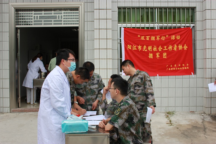 陽江市光明社會工作協會到陽江軍分區開展“雙百擁軍行”義診活動