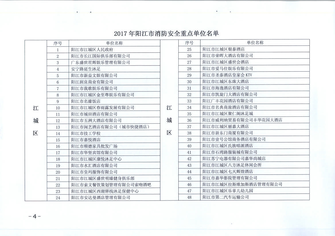 關于2017年陽江市消防安全重點單位和火災高危單位的公告