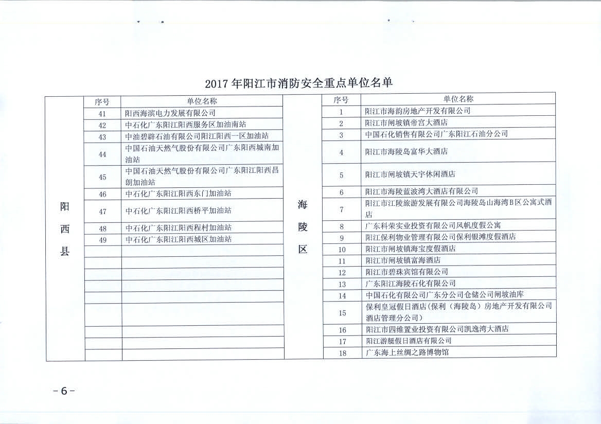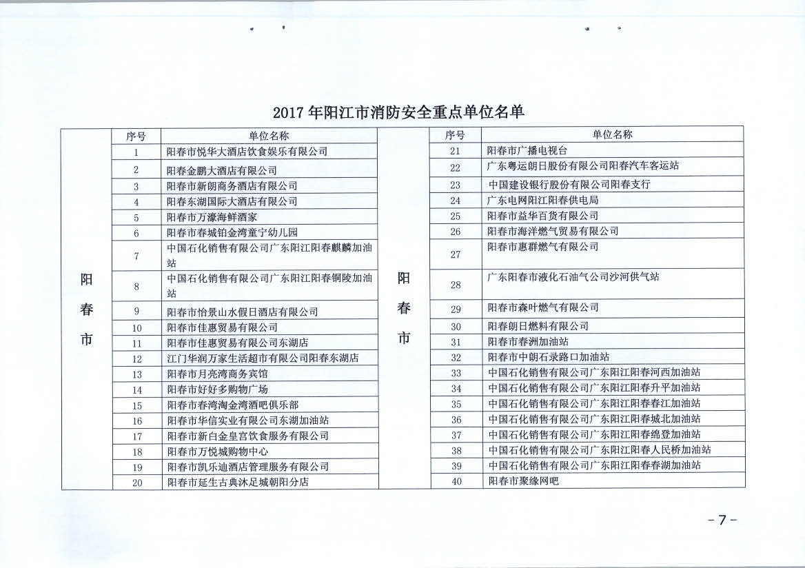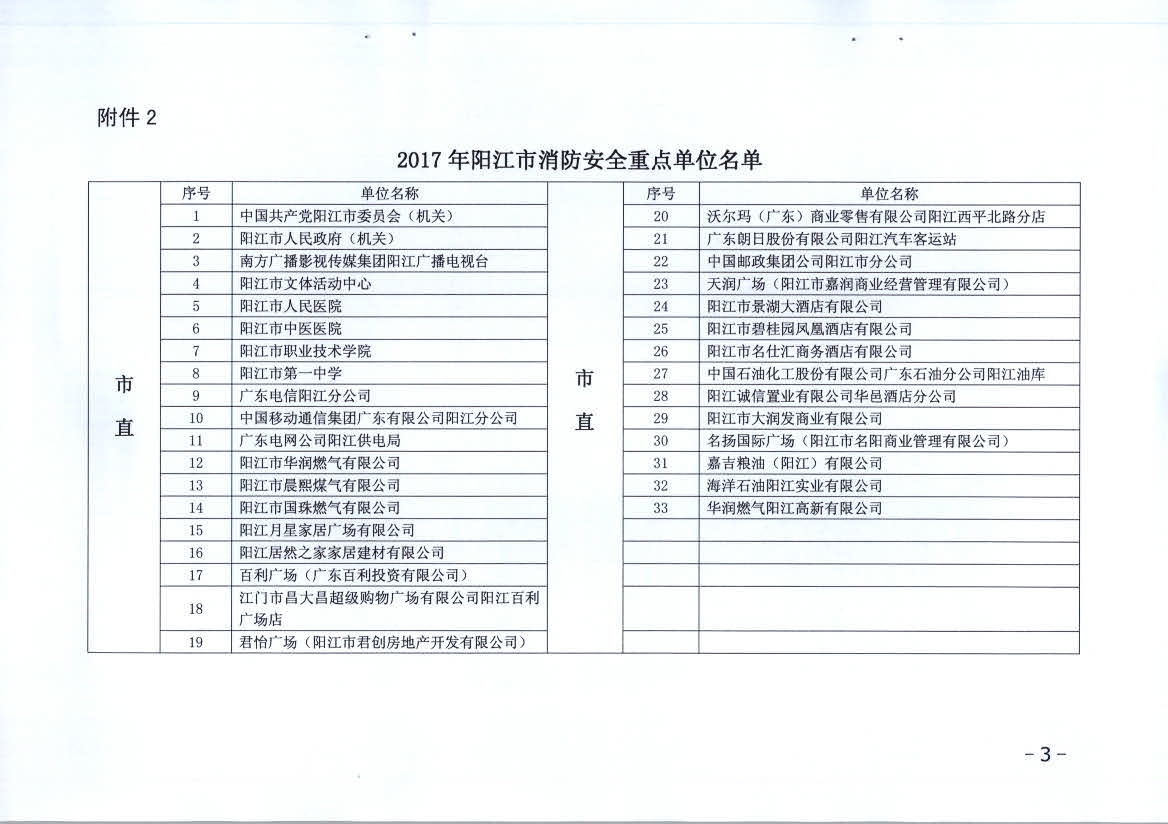 附件:1、2017年陽江市消防安全重點單位名單
