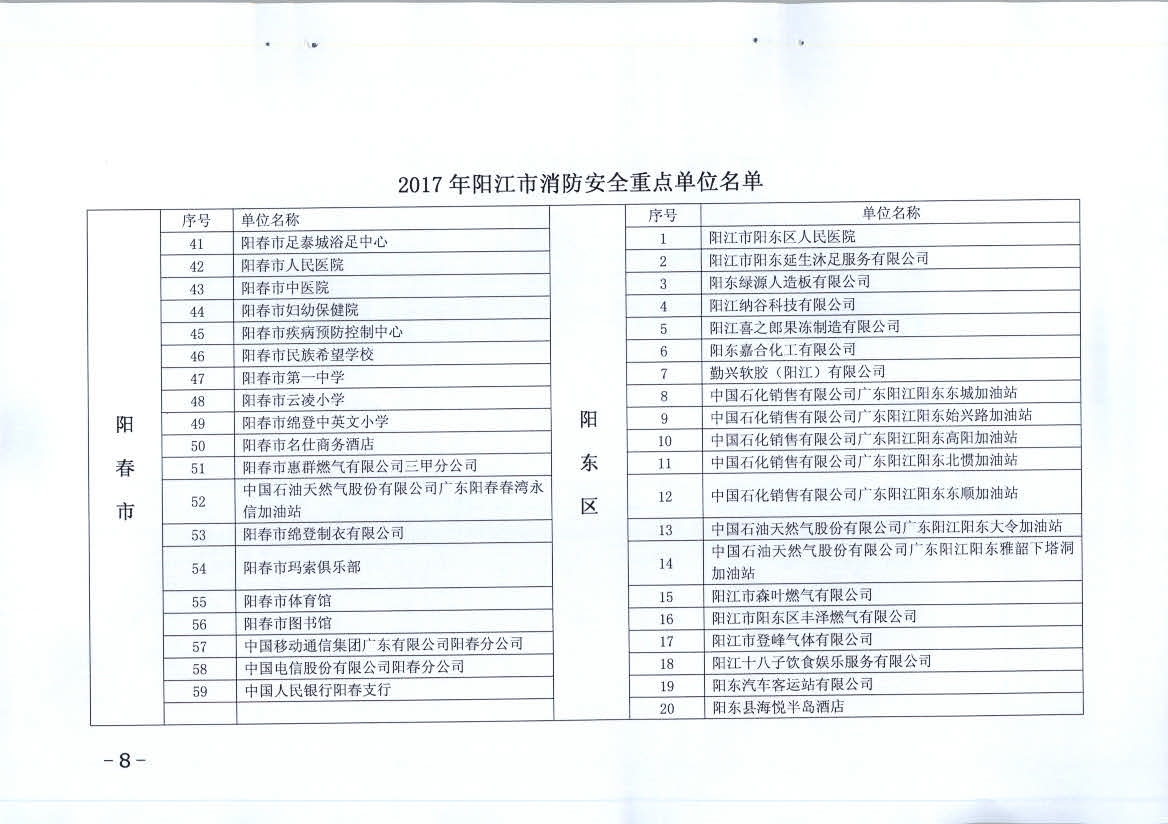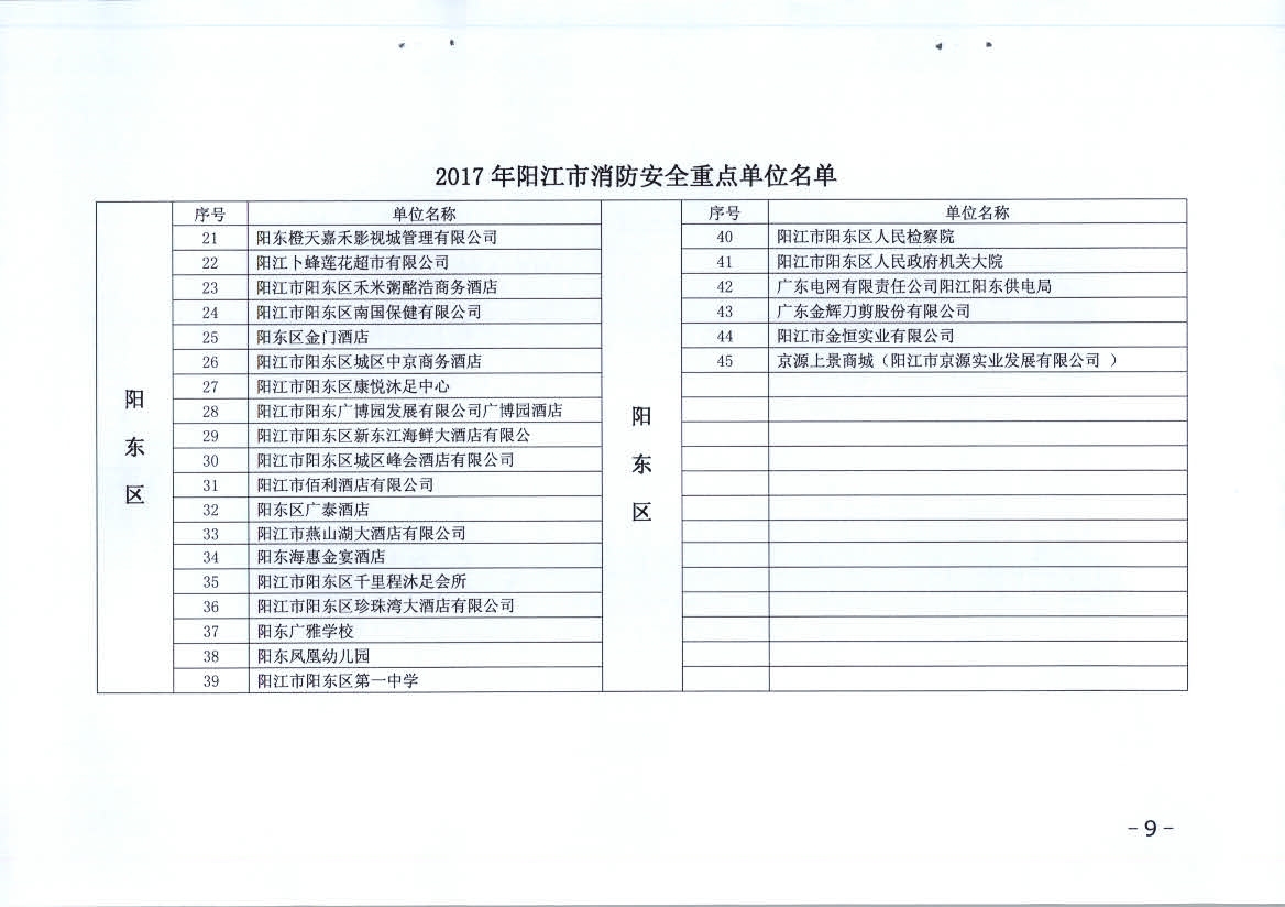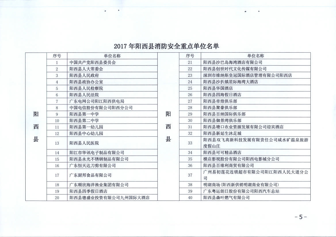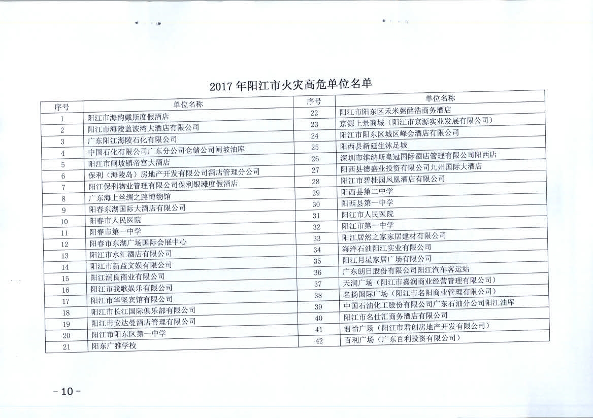 附件:1、2017年陽江市消防安全重點單位名單