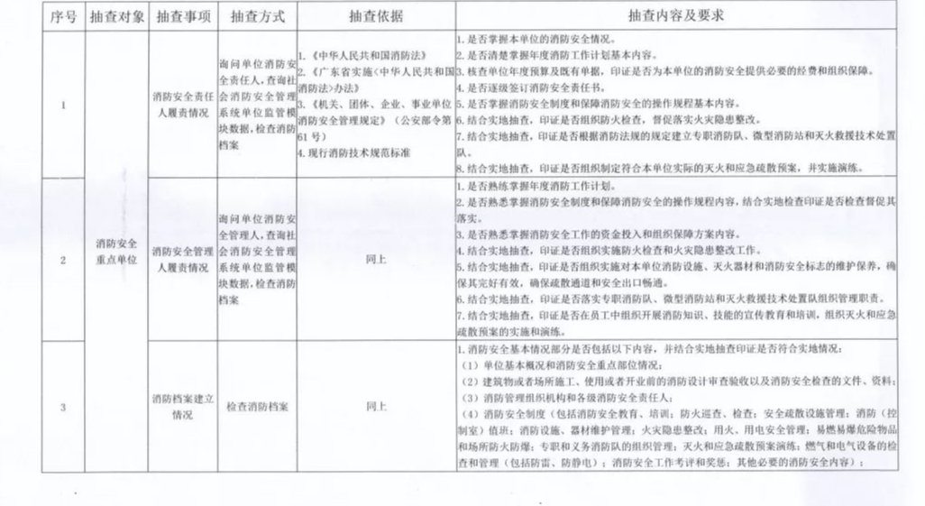 廣東省消防救援總隊“雙隨機、一公開”抽查事項清單公告