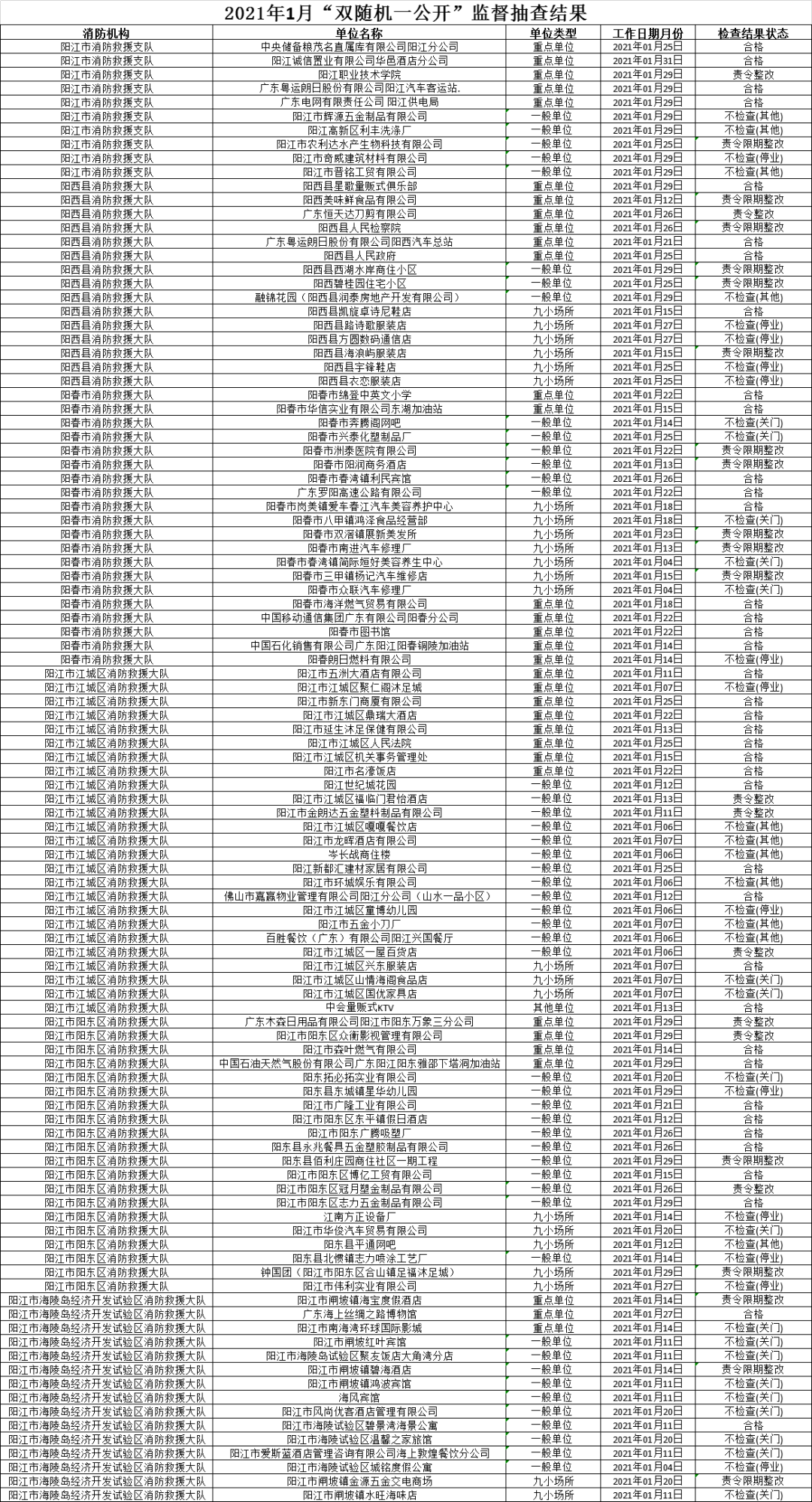 陽江消防“雙隨機(jī)、一公開”1月份檢查結(jié)果公布
