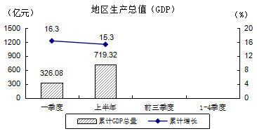 2021年上半年陽江市地區生產總值為719.32億元,同比增長15.3%,兩年平均增長8.0%。其中,第一產業增加值117.85億元,同比增長6.4%,兩年平均增長3.5%;第二產業增加值295.10億元,同比增長28.3%,兩年平均增長16.5%;第三產業增加值306.36億元,同比增長8.7%,兩年平均增長2.2%。