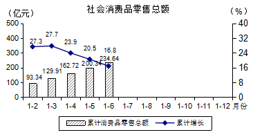 上半年,全市實現社會消費品零售總額234.64億元,同比增長16.8%,兩年平均下降1.7%,平均增速比一季度回落1.8個百分點。