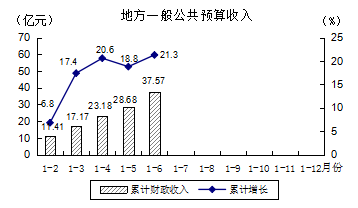 上半年,全市地方一般公共預算收入37.57億元,同比增長21.3%,兩年平均增長7.9%,平均增速比一季度加快3.3個百分點。其中,稅收收入25.98億元,增長27.8%,兩年平均增長5.6%。