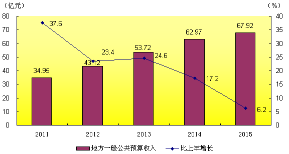 圖8:2011-2015年地方一般公共預算收入(年均增長21.4%)