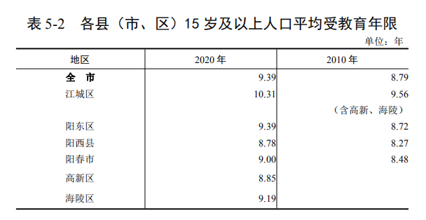 陽江市第七次全國人口普查公報(第五號)
