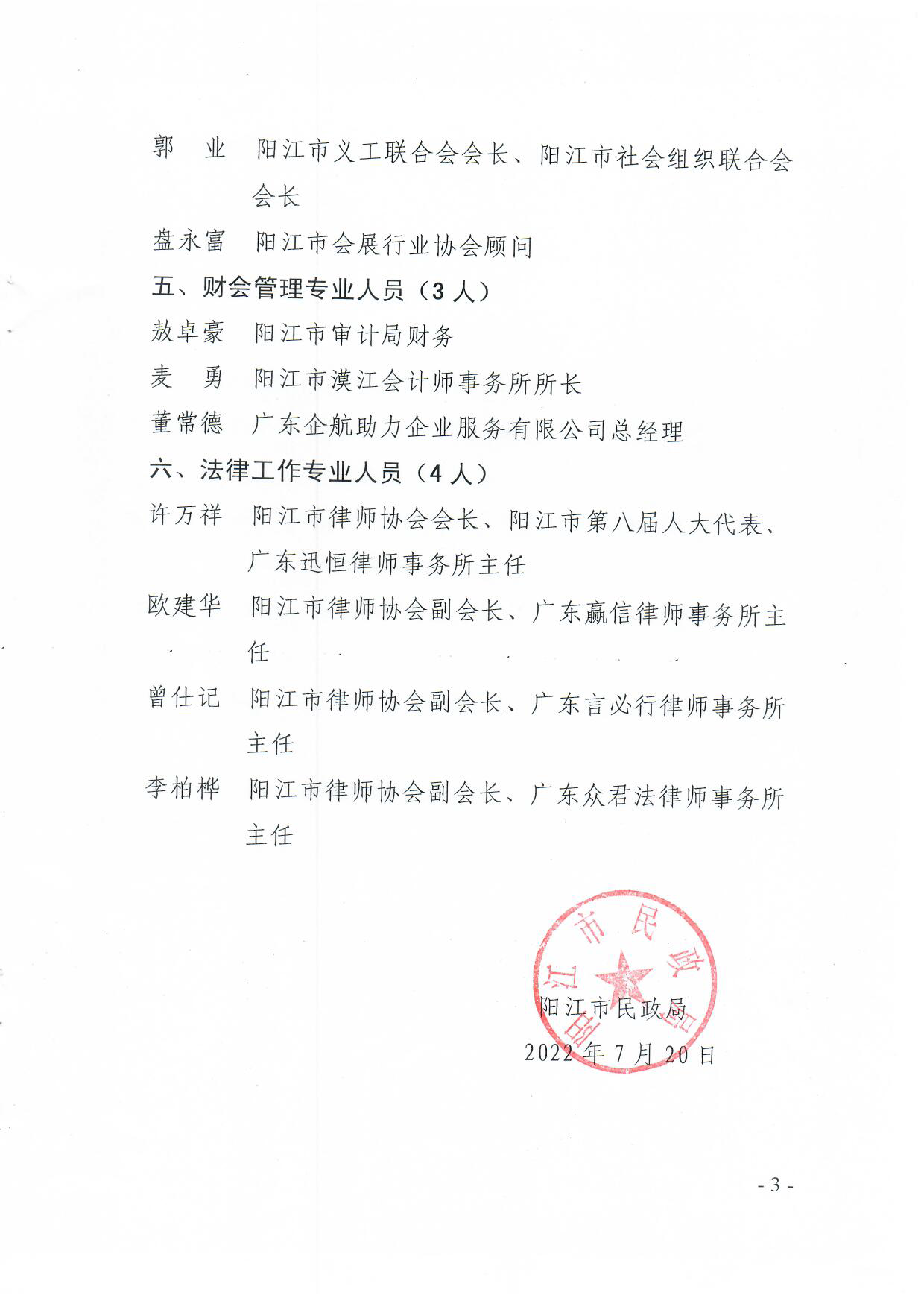 關于成立陽江市全市性社會組織評估專家庫的通告