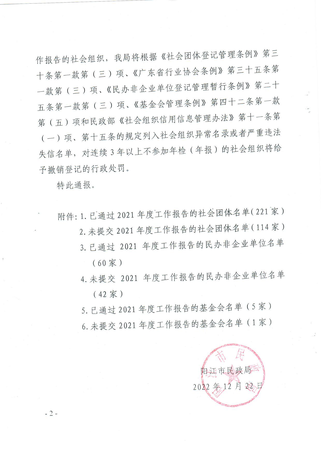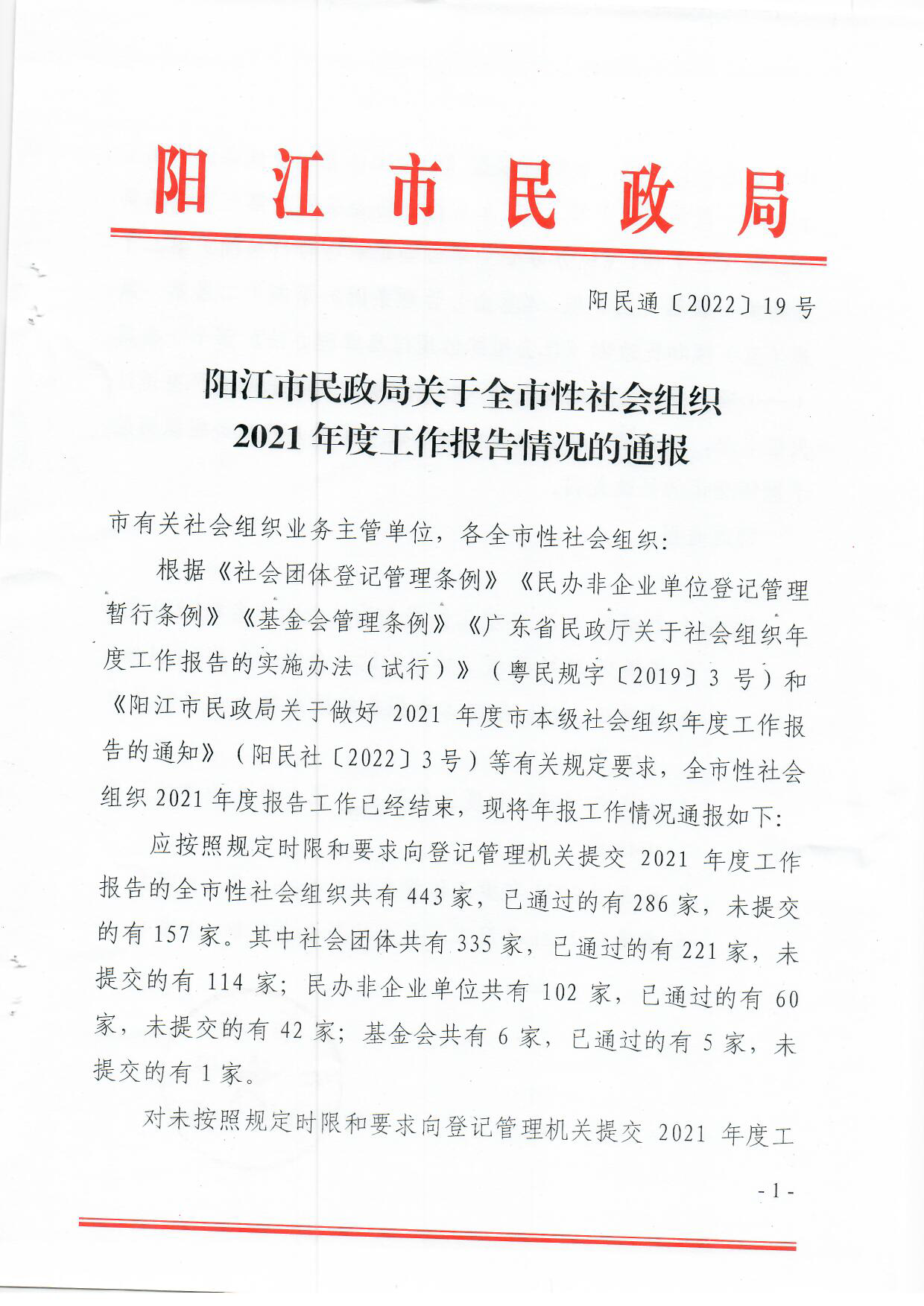 陽江市民政局關于全市性社會組織2021年度工作報告情況的通報.pdf