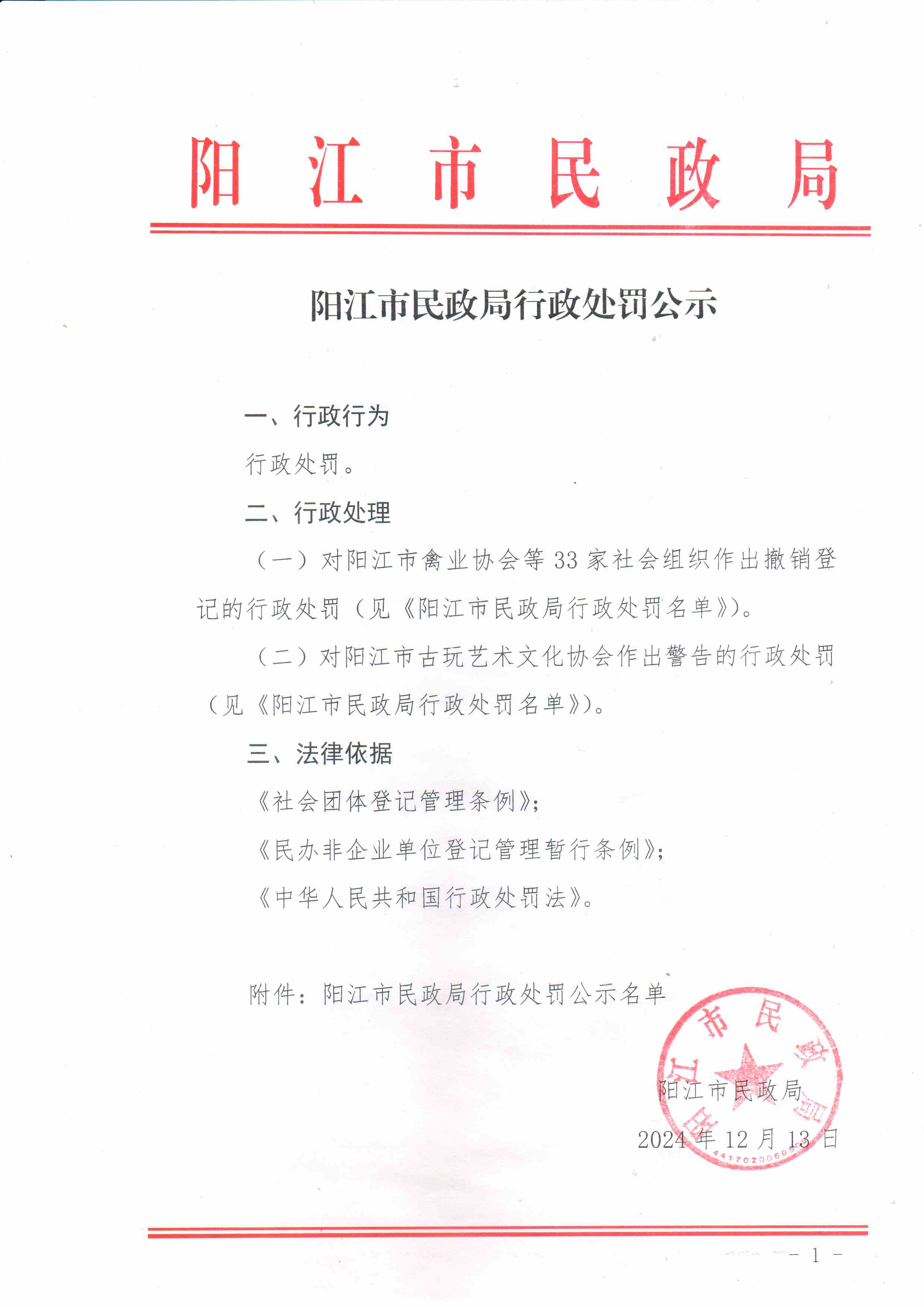 陽江市民政局行政處罰公示