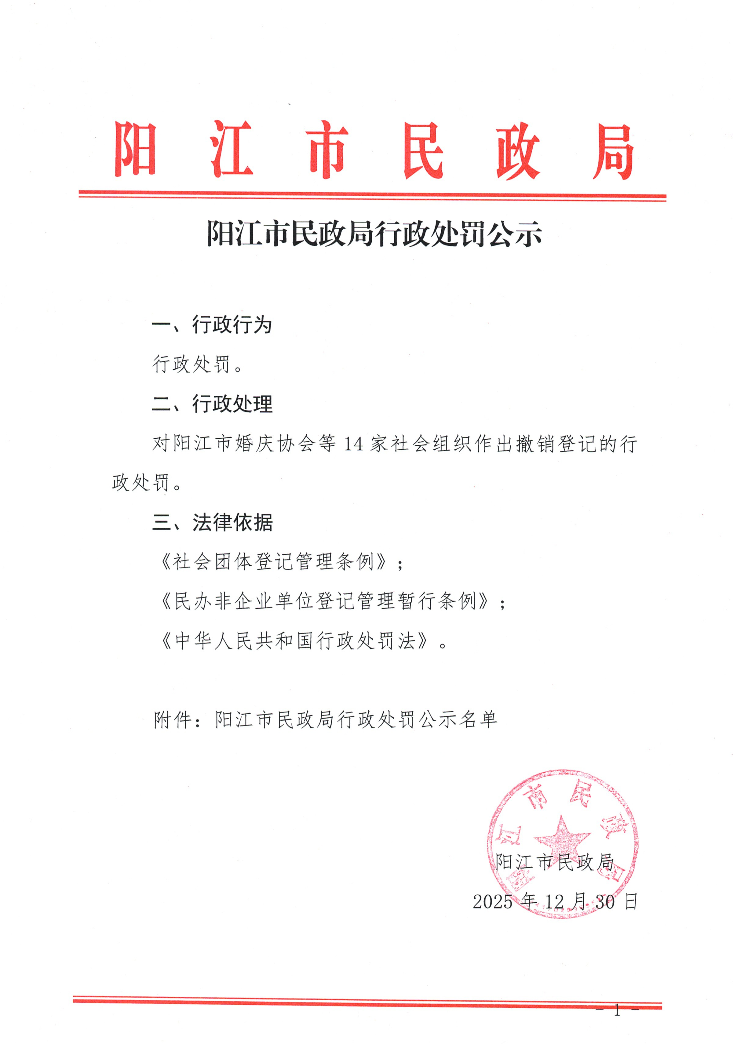 陽江市民政局行政處罰公示