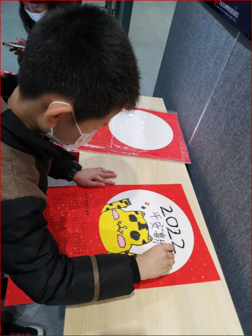 02給大家拜年啦 畫畫與剪紙 講解員生動的解說,沉浸式觀展,兒童對與虎有關的東西進行思考后開啟繪畫活動。孩子們自由大膽創作的作品,或顯稚趣、或具生動,或富奇思妙想。讓他們真切感受到了博物館給他們帶來的別樣樂趣。 最后,孩子們的作品蓋上了陽江市博物館的印章并將在春節期間在館內展出。 蓋章&合照 03相關信息 《虎虎生福--壬寅(虎年)新春生肖文物圖片聯展》由國家文物局為指導單位,中國文物報社、廣東省博物館(廣州魯迅紀念館)等50個文博單位為主辦,廣東省流動博物館和陽江市博物館承辦,為陽江市民帶來2022年第一個虎年精品文物圖片展覽。 讓大眾走進博物館,讓兒童愛上博物館,在博物館內尋找知識、探索知識、實踐知識,是博物館公眾服務教育的重要職責之一。而讓小朋友拿起畫筆,把自己的所見所聞用畫筆的形式加以藝術呈現,是博物館社會教育工作中最有趣的實踐活動。