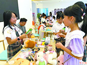當(dāng)日上午9時(shí)多,記者來(lái)到市圖書館一樓,只見萌娃們正在家長(zhǎng)們的幫助下擺放商品、裝飾攤位。這些攤位有帳篷、露營(yíng)車、野餐墊,也有各種書桌,布置了設(shè)計(jì)新穎的宣傳海報(bào),以及別出心裁的抽獎(jiǎng)箱,擺放著圖書、文具、玩具、手工藝品等。“小掌柜”們分為3組,坐在自己的攤位前,用各種方式推銷自己的商品,促銷創(chuàng)意層出不窮。