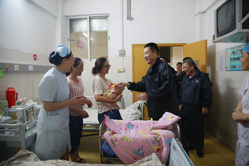 ▲陽(yáng)江市人民醫(yī)院領(lǐng)導(dǎo)到產(chǎn)房慰問(wèn)平安降臨的“山竹寶寶”
