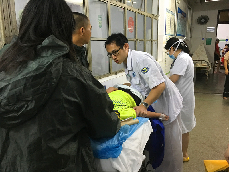 為保障市民在臺(tái)風(fēng)期間的醫(yī)療需求,確保1336名住院患者的救治及時(shí)到位,陽(yáng)江市人民醫(yī)院安排了近千名醫(yī)務(wù)人員堅(jiān)守崗位。其中,急診科值班醫(yī)務(wù)人員達(dá)78人。從9月16日中午12時(shí)至9月17日上午8時(shí),在臺(tái)風(fēng)暴雨最猛烈的這段時(shí)間里,市人民醫(yī)院院共出動(dòng)救護(hù)車17次,急診接診患者達(dá)205人。其中,外傷患者23人、危重患者21人。
