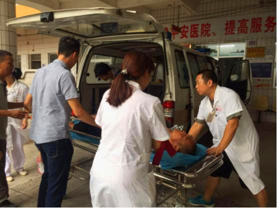9月16日午飯時(shí)間,陽(yáng)春市合水鎮(zhèn)留垌村一名五保老人在家出現(xiàn)嚴(yán)重不適,且生活無(wú)法自理。合水中心衛(wèi)生院醫(yī)療救援隊(duì)接到救援電話后,立即奔赴留垌村開(kāi)展救援工作。臺(tái)風(fēng)天氣風(fēng)雨交加,道路泥濘濕滑,隨處可見(jiàn)折斷的樹(shù)技橫在路上,給救援工作增加了難度。但救援隊(duì)不畏危險(xiǎn),不懼困難,克服重重阻礙趕 到患者家中,一邊安撫好患者情緒,一邊開(kāi)展有序的救援工作,將患者平安地送到醫(yī)院救治。