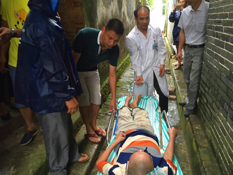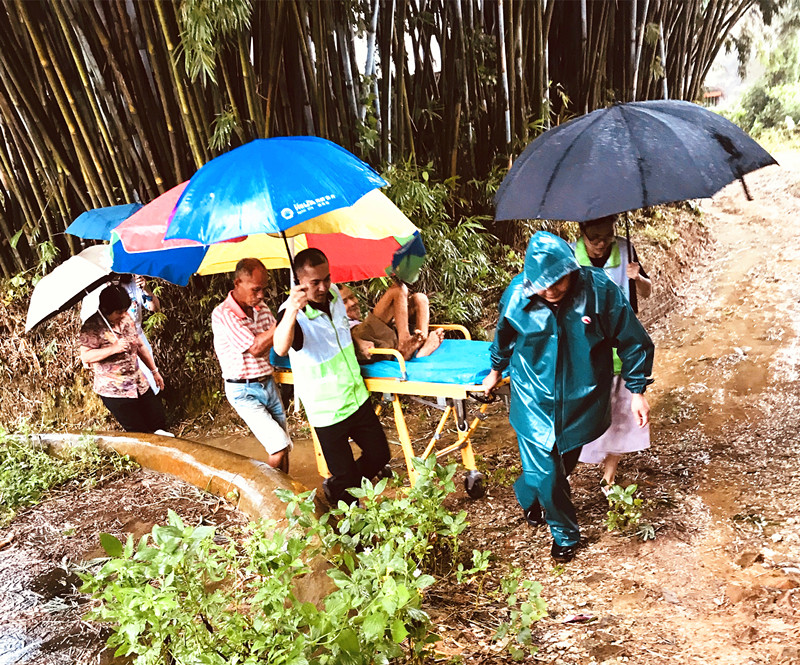 ▲雅韶鎮(zhèn)衛(wèi)生院轉(zhuǎn)移行動(dòng)不便的老人