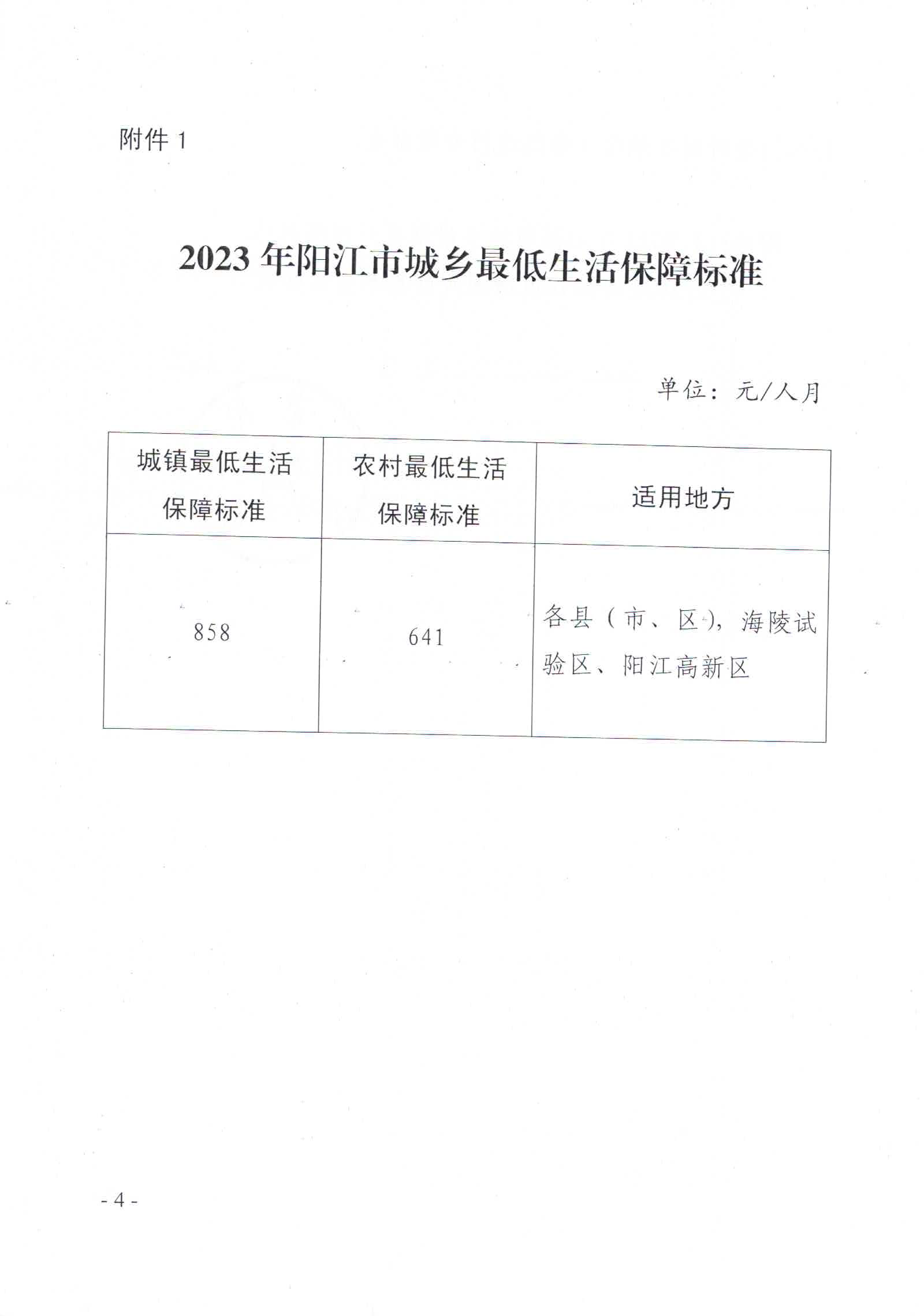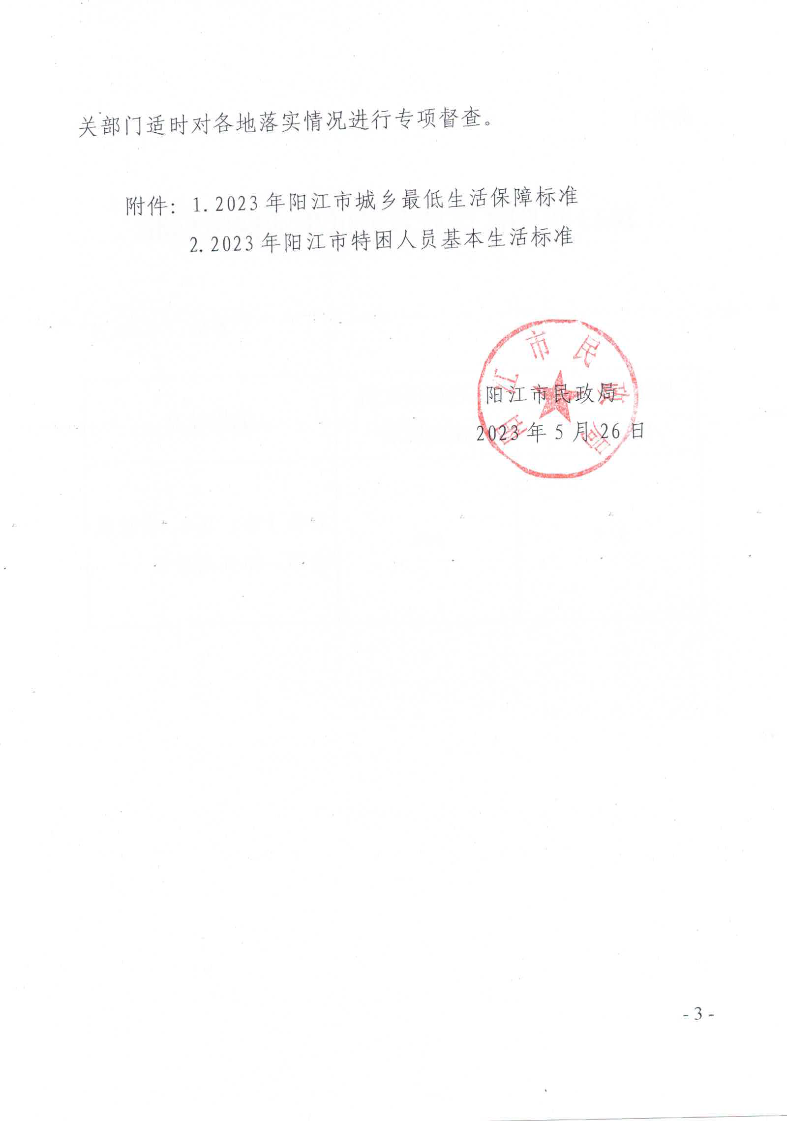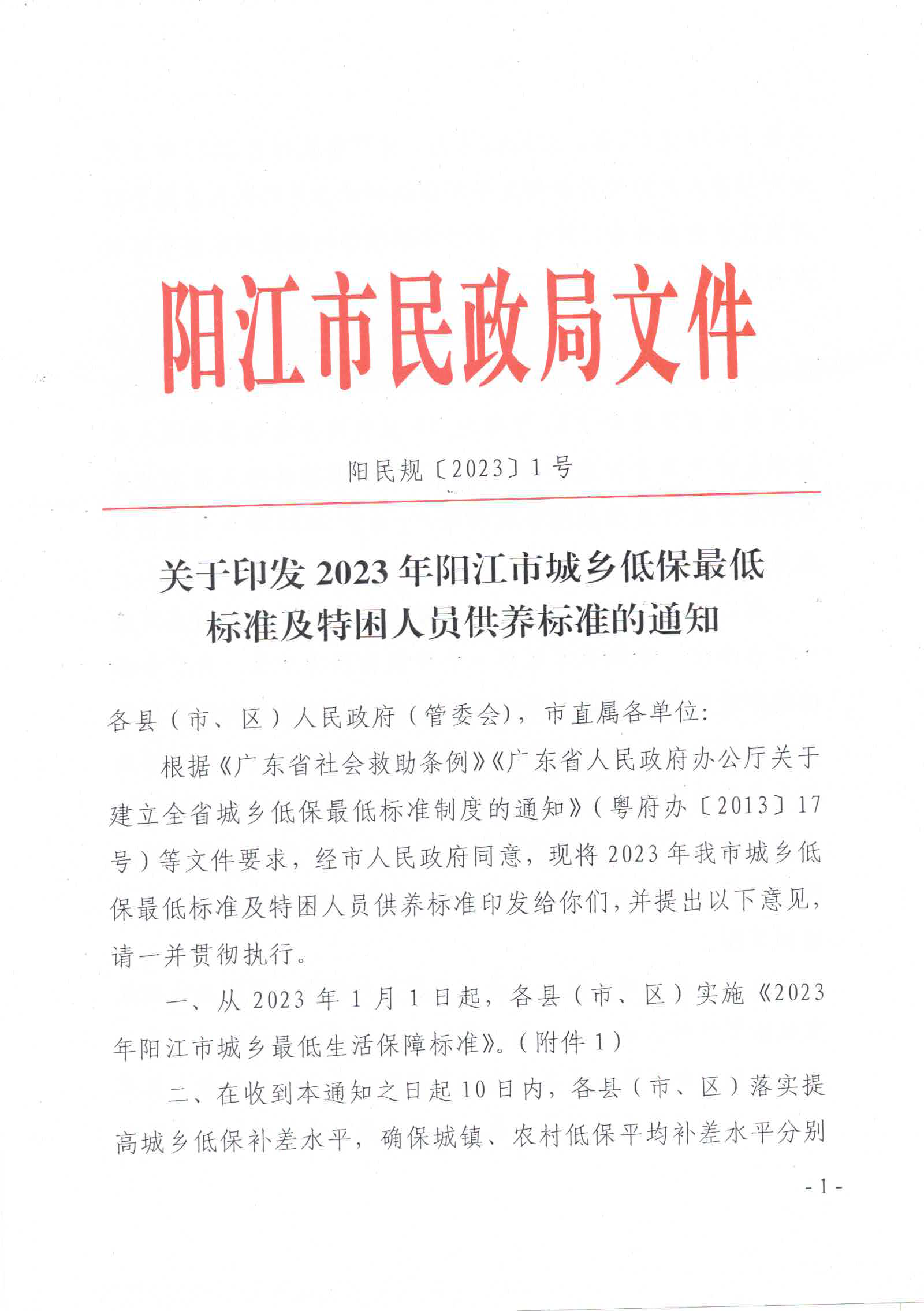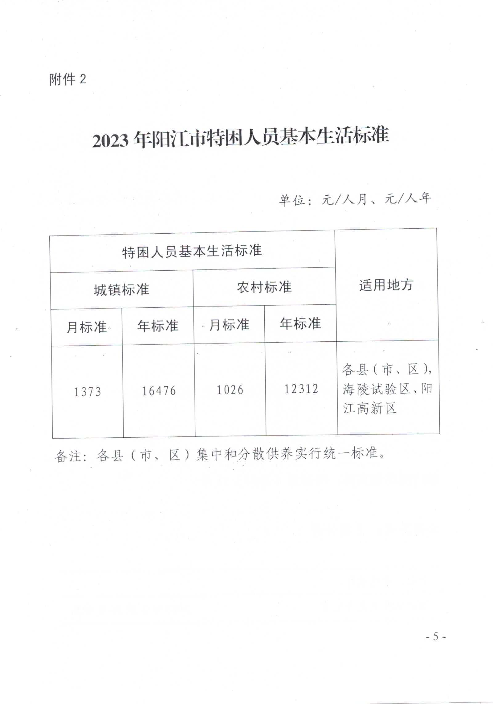 關于印發2023年陽江市城鄉低保最低標準及特困人員供養標準的通知
