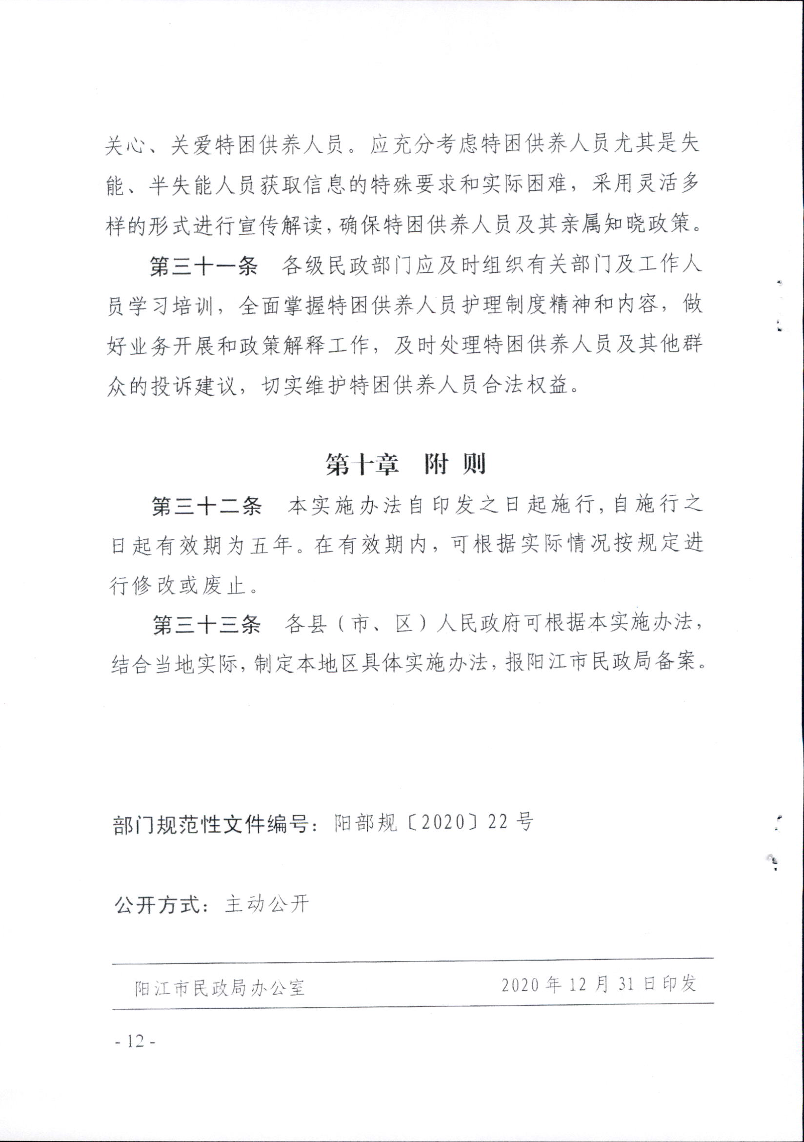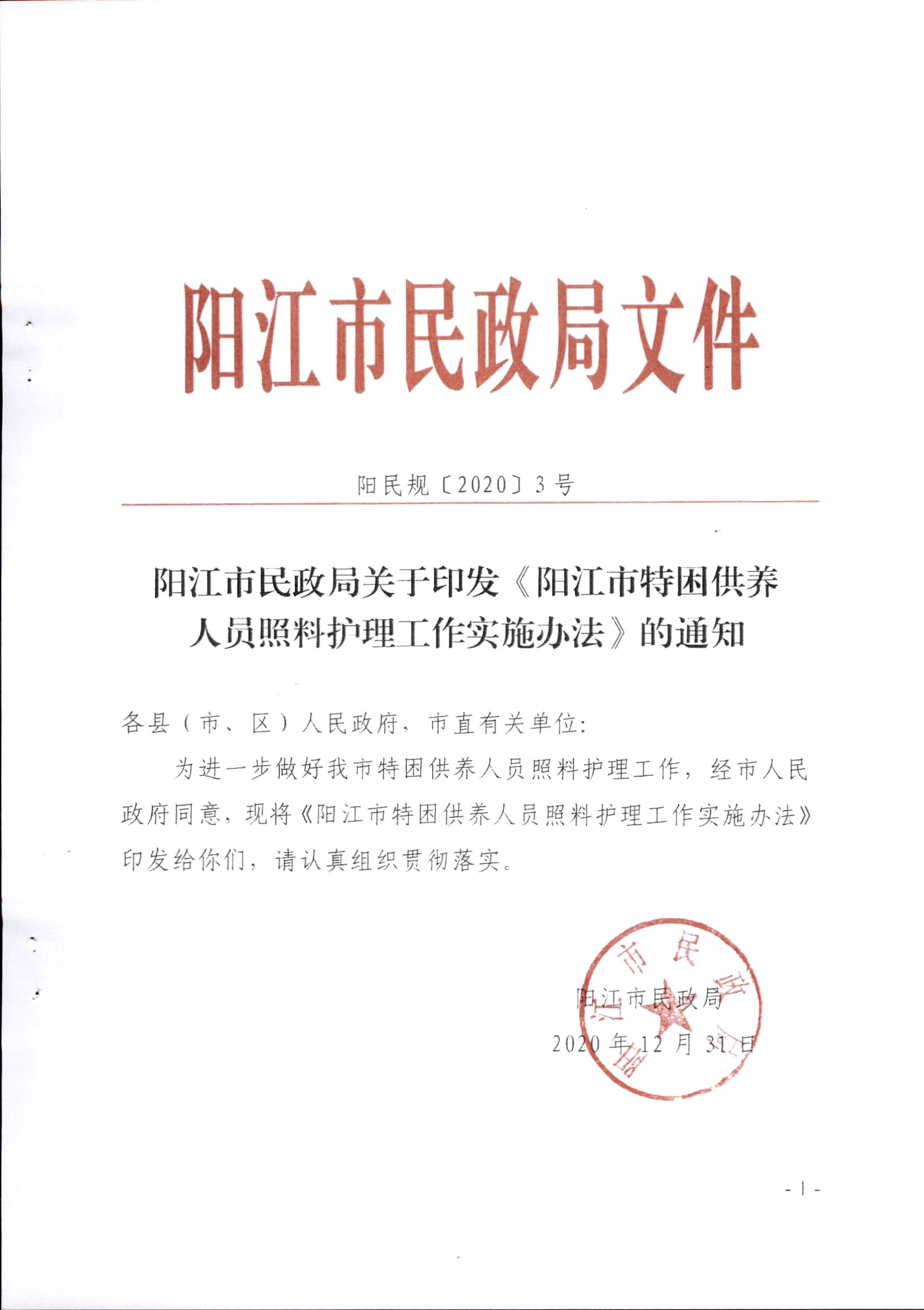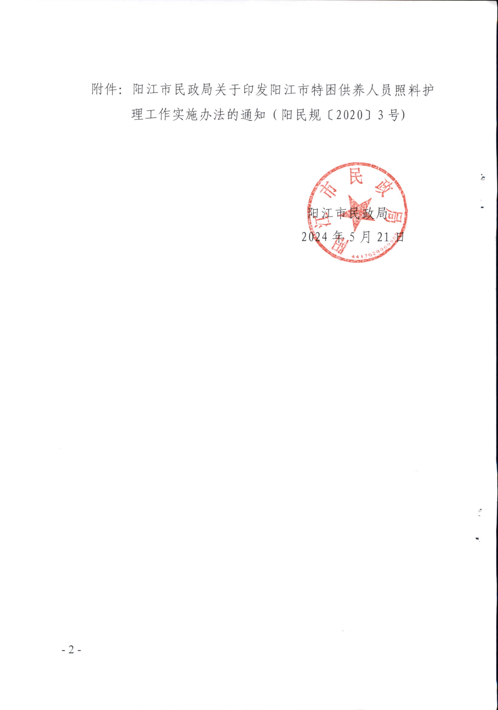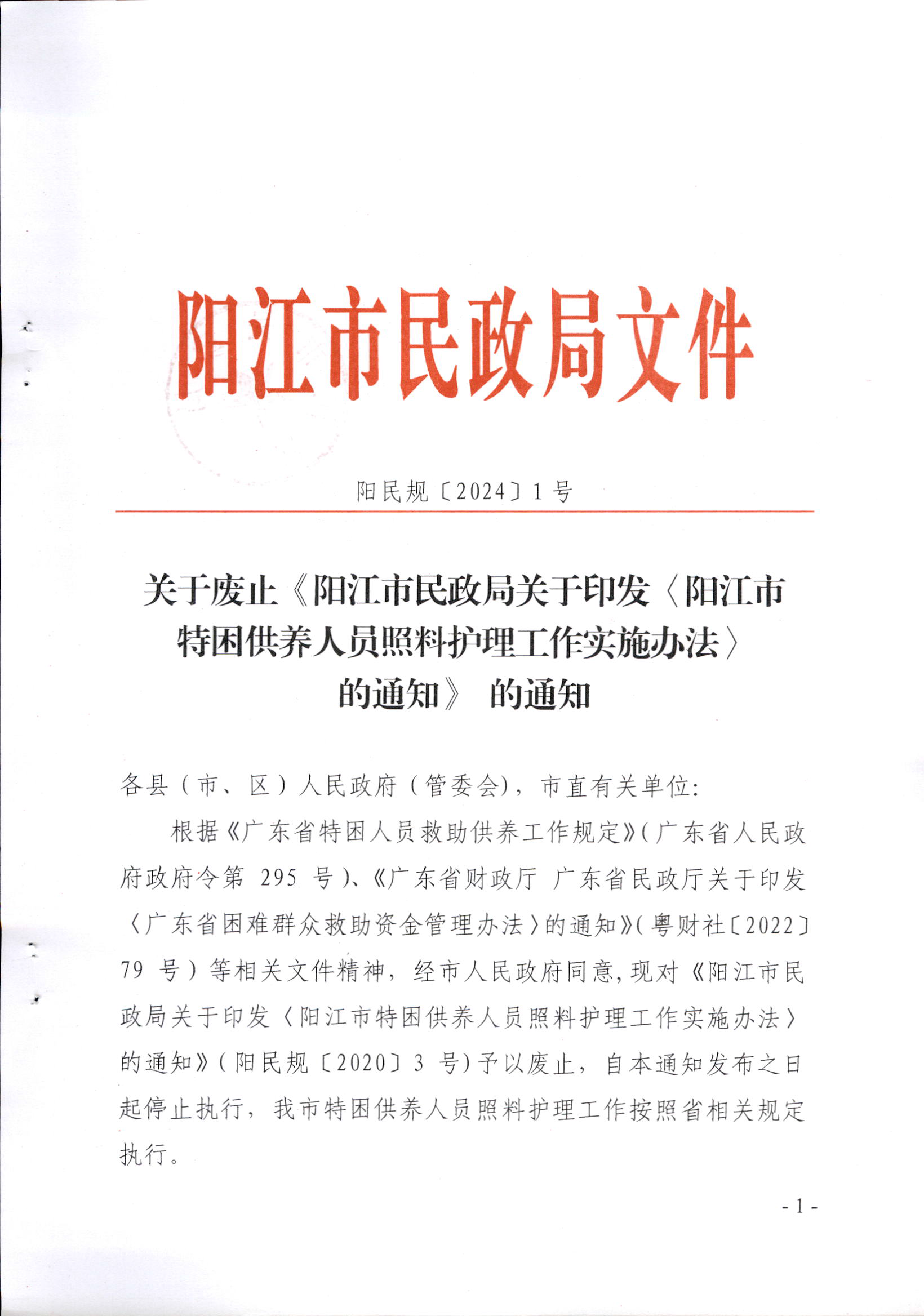 關于廢止《陽江市民政局關于印發 陽江市特困供養人員照料護理工作實施辦法 的通知》的通知
