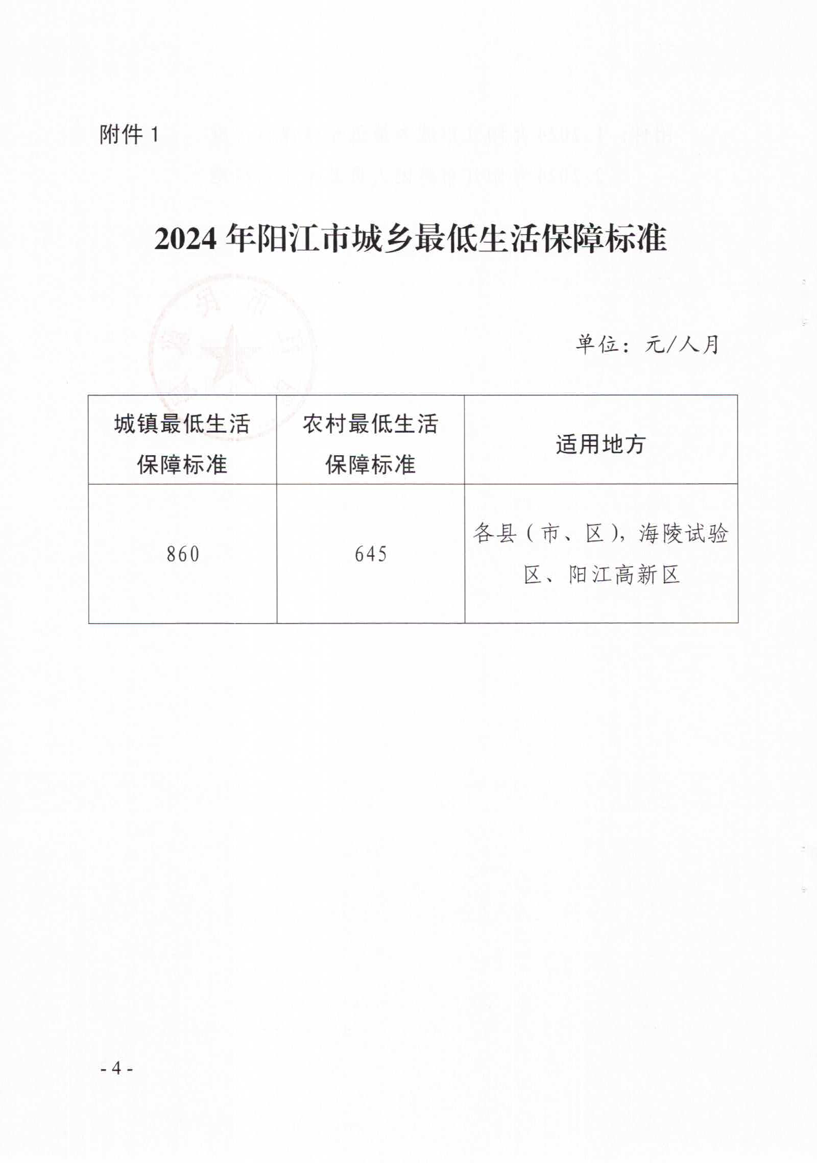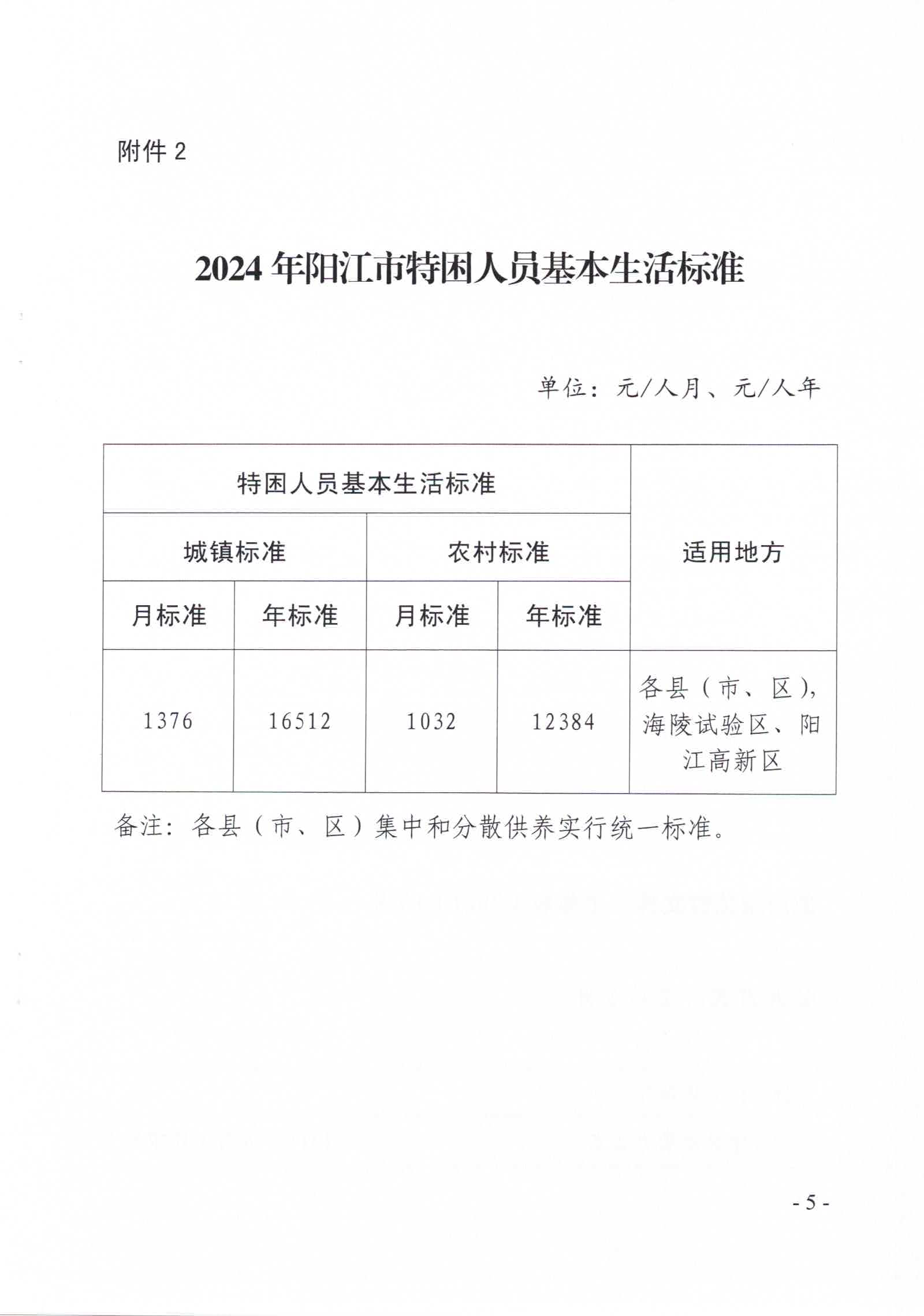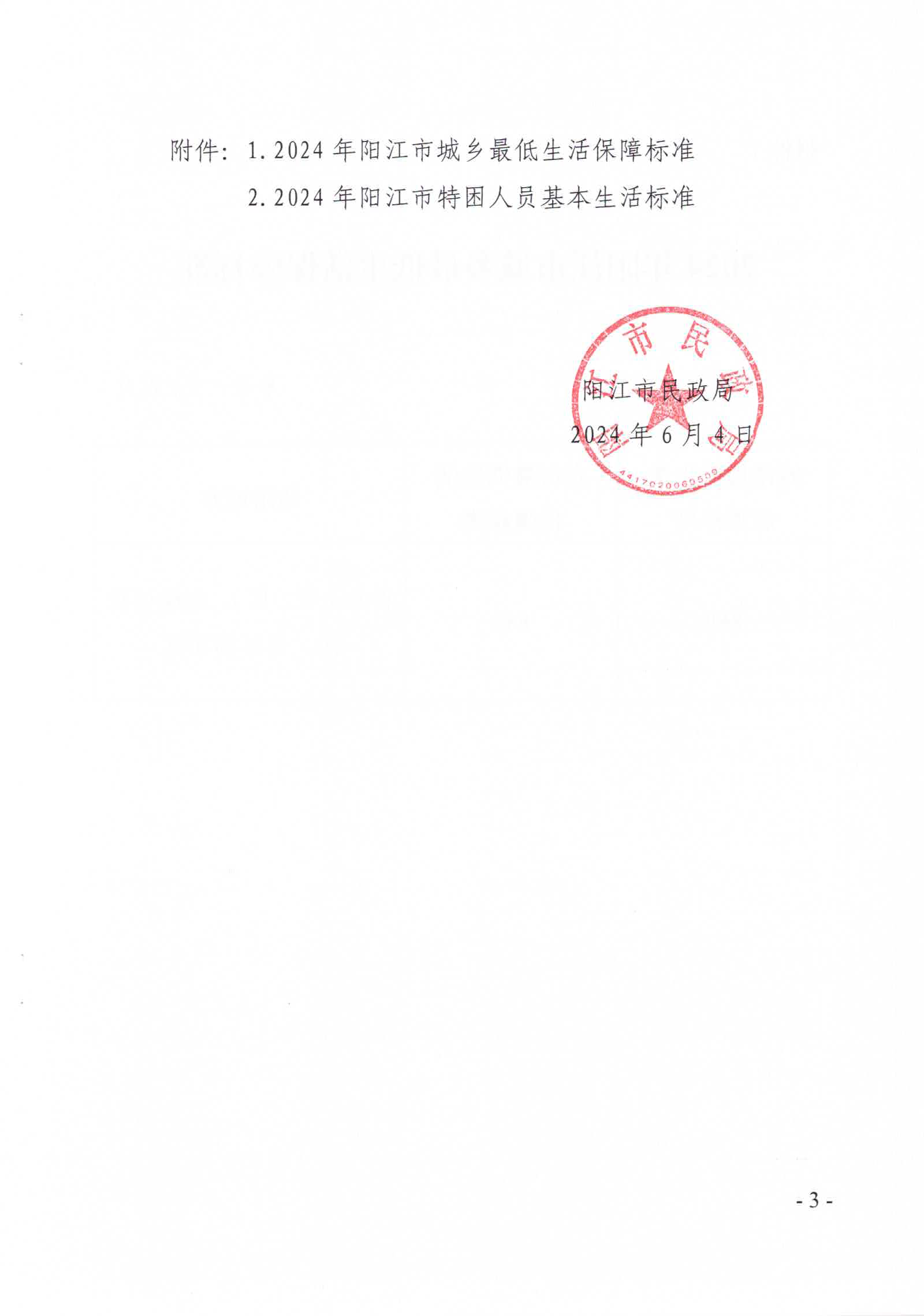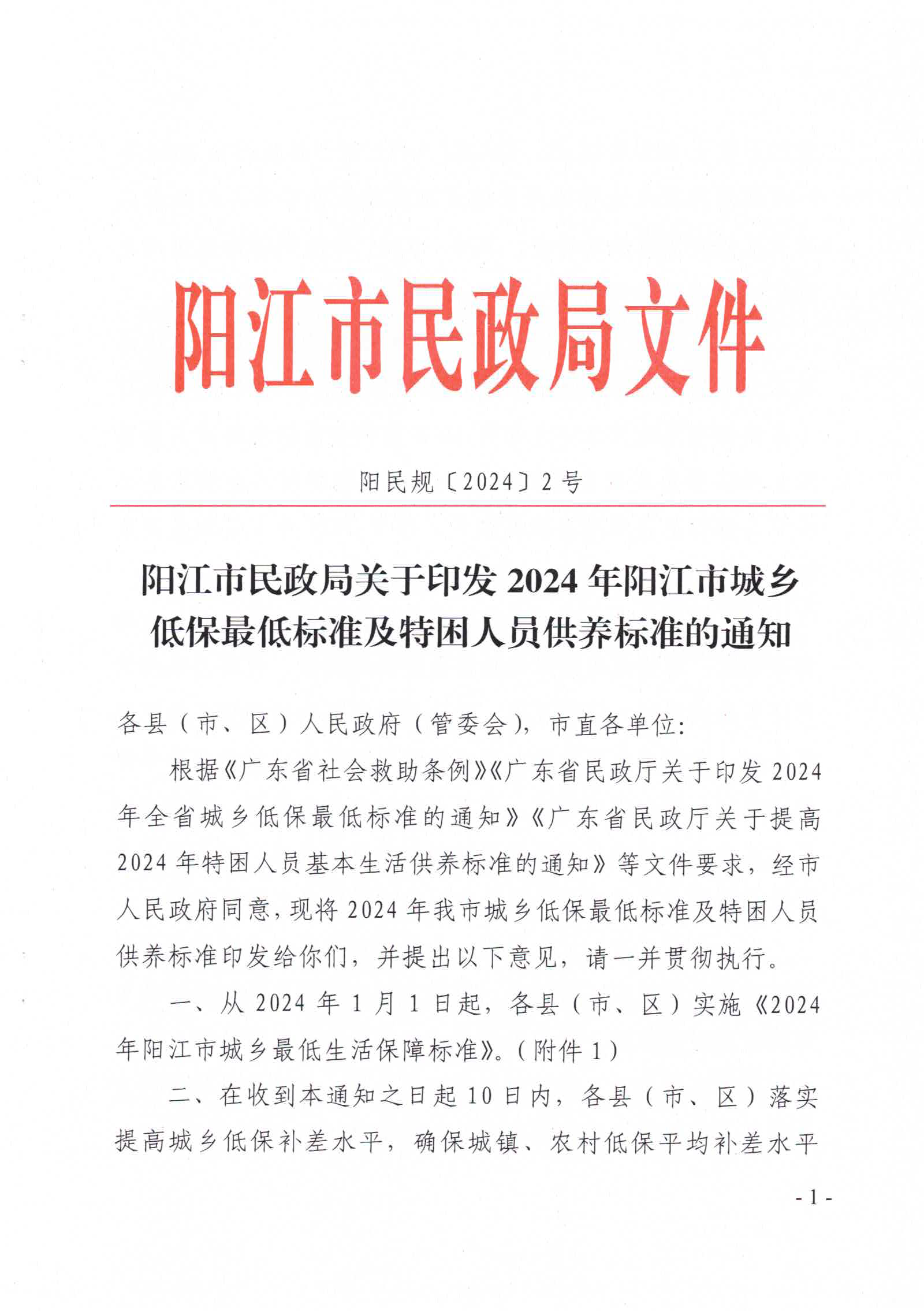 陽江市民政局關于印發2024年陽江市城鄉低保最低標準及特困人員供養標準的通知