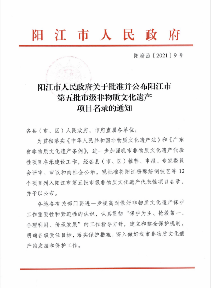 陽江粉酥制作技藝附有的文化藝術形式多種多樣,內容豐富,從不同時期反映人們的思想、審美取向、表現祈求,具有豐富的歷史、文學、藝術和民俗研究意義。